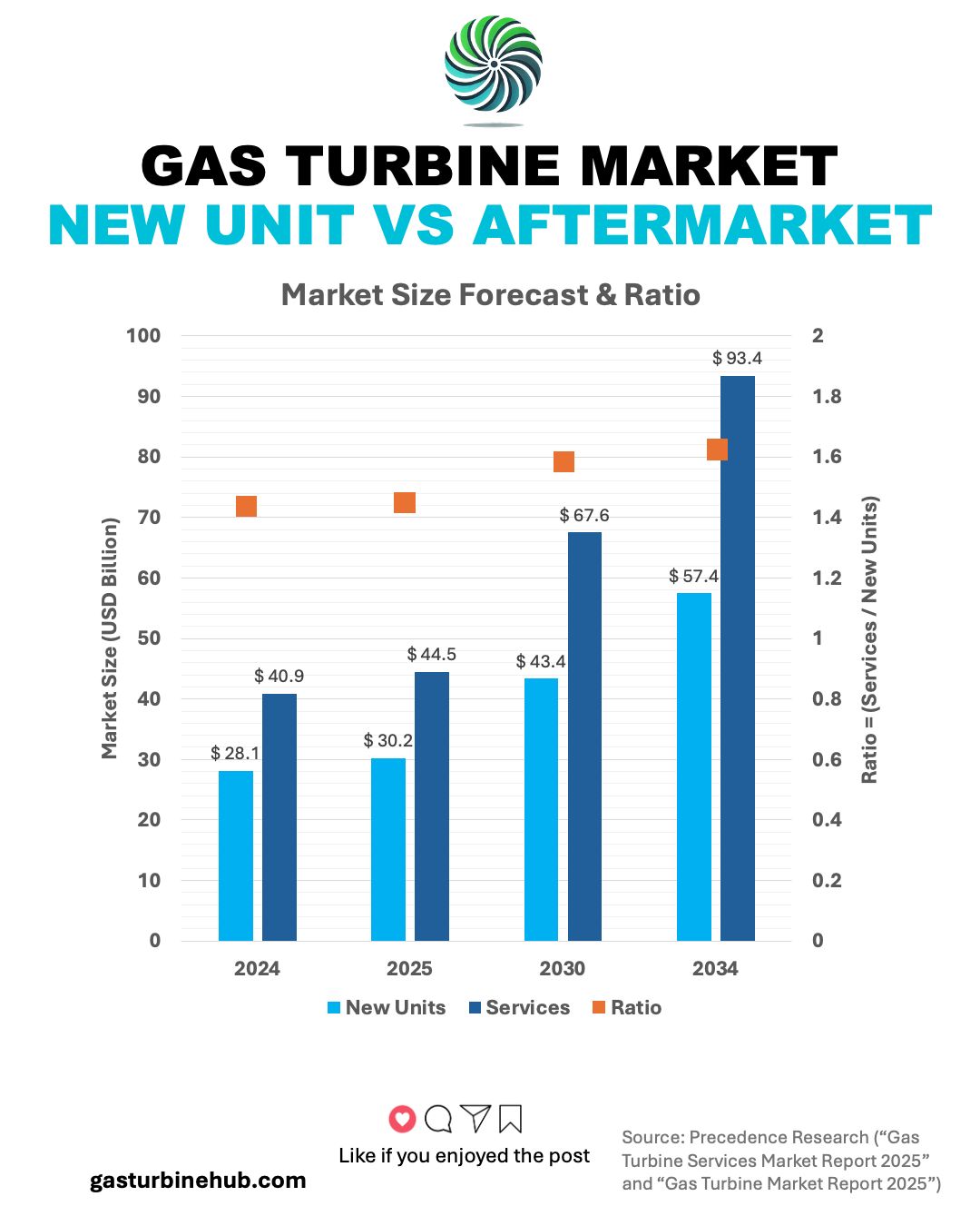 References: [1] Gas Turbine World, 2025 Market Forecast Revision. [2] Precedence Research, “Gas Turbine Services Market Report 2025”.